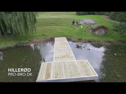Bro med brohoved. Broen er sat op i en privat sø, hvor den fungerer som vandterrasse.